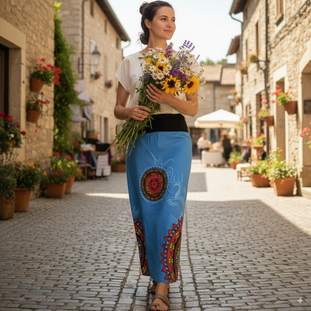 Tento model môžete nosiť ako sukňu aj ako šaty. Mandalový vzor robí tento kúsok veľmi výnimočným.