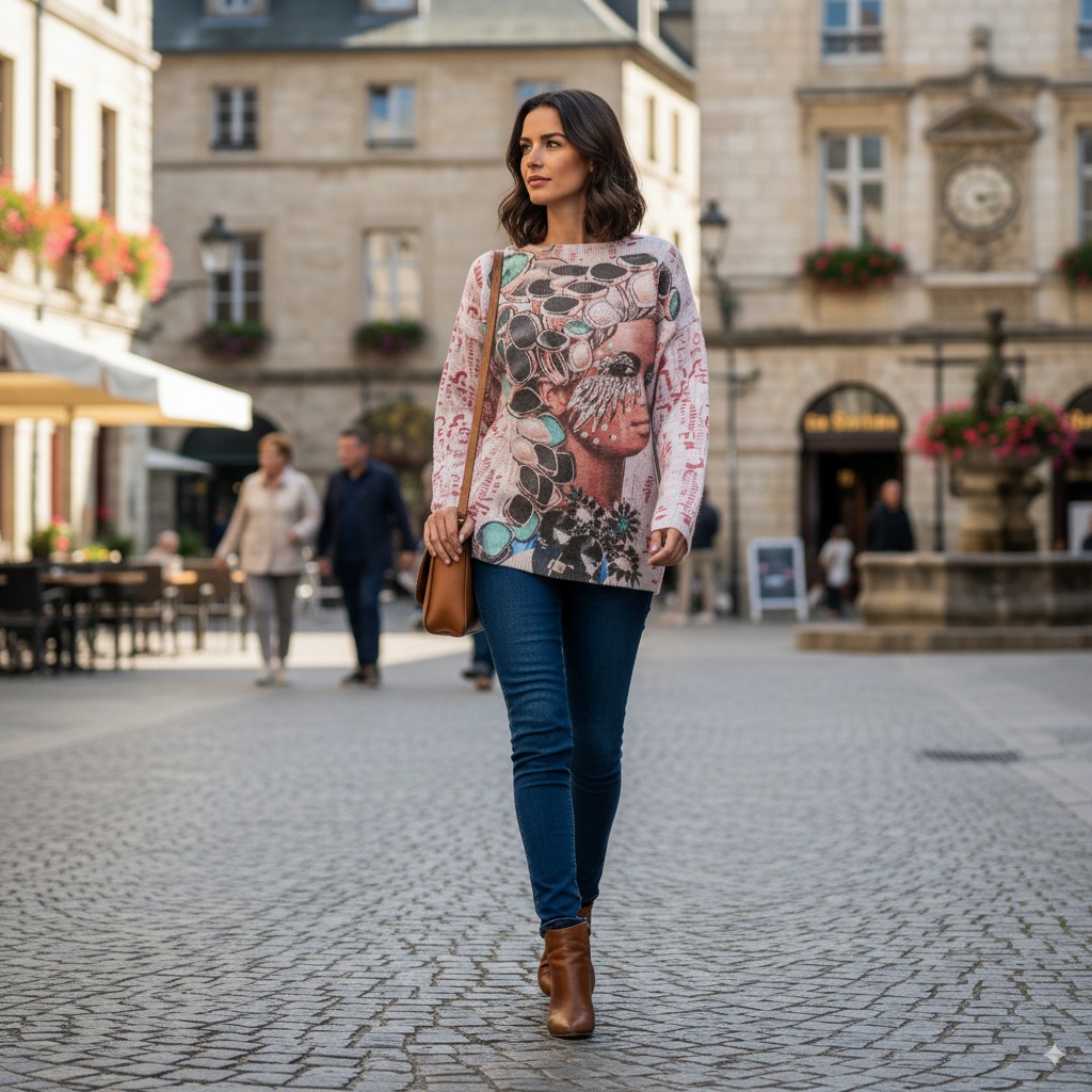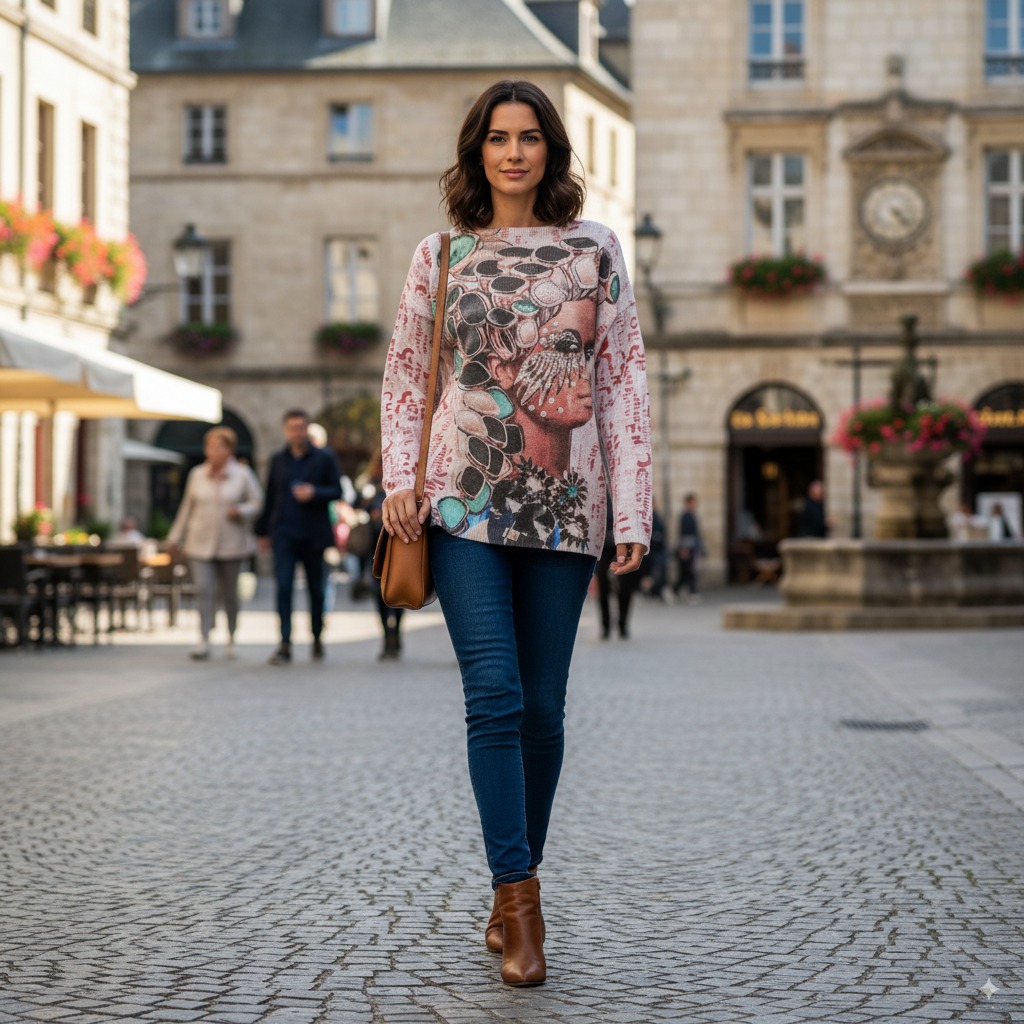Hypnotický pohľad "prsťeňovej šamanky" na tomto pulóvriku ihneď upúta.
