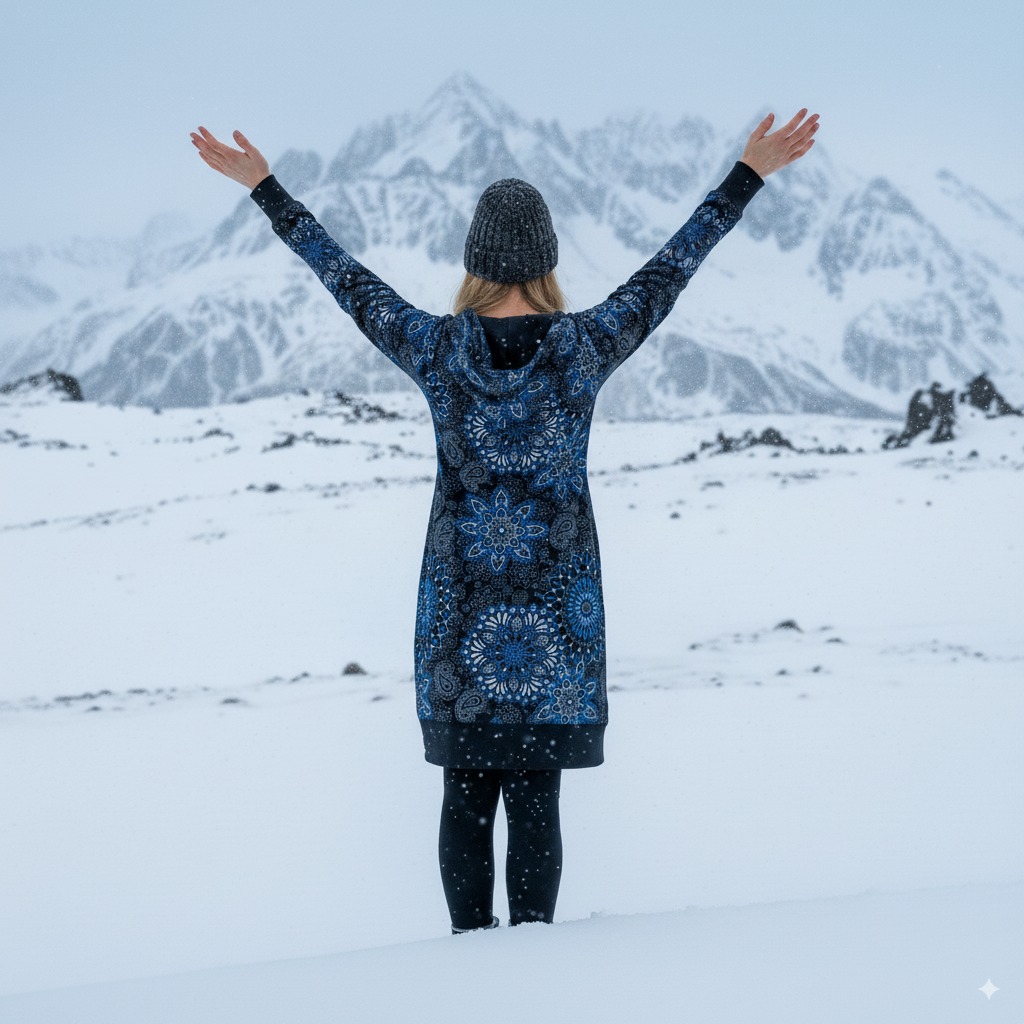 Športové mikinovo-tunikové šaty. Určite spestria váš šatník a budú sa vám skvelo nosiť. Pútavý mandalový vzor ihneď zaujme.
