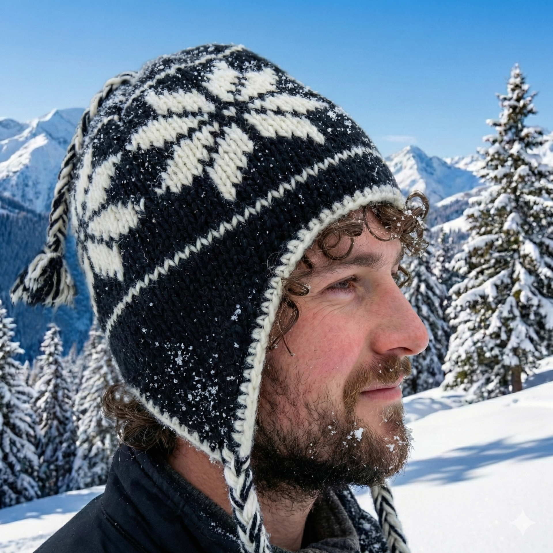 Vlnená vzorovaná hrejivá zimná čiapka vhodná aj do veľmi chladného počasia. Flís pod vlnenou vrstvou veľmi dobre tesní vietor aj chlad. A náušníky ochránia vaše ušká.